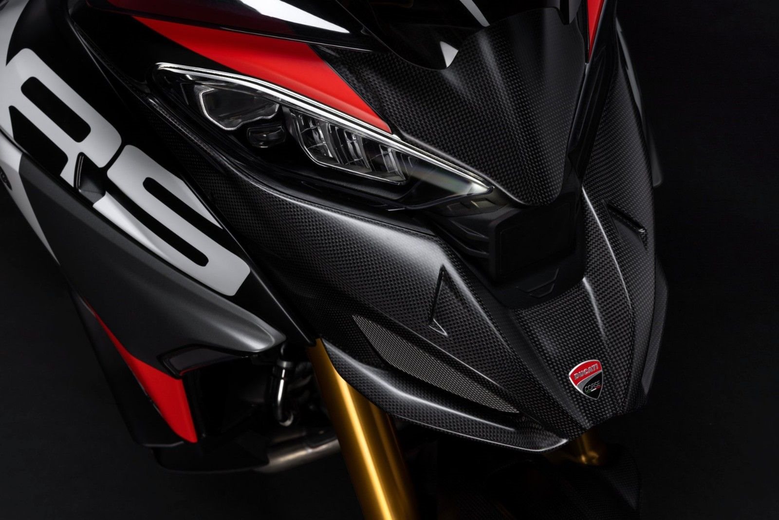 Serienausstattung Ducati Quick Shift (DQS) up/down 2.0, Endschalldämpfer von Akrapovic, Coming-Home-Funktion, TFT-Farbdisplay, Hands-Free, Voll-LED-Scheinwerfer, Daytime Running Light (DRL), automatische Blinkerrückstellung, Karten-Navigation, 12V-Steckdose, USB-Steckdose, beleuchtete Bedienelemente, Abstands-Tempomat, Ducati Electronic Suspension (DES) 2.0 mit Öhlins Smart EC 2.0